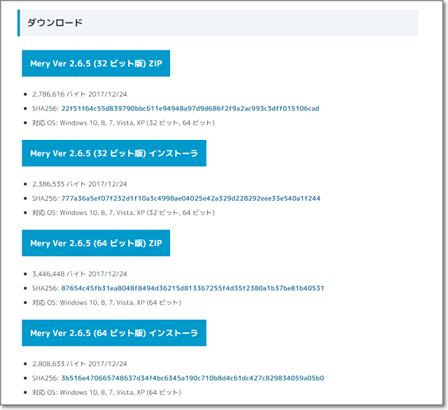 バージョン2.6.5の記事の下のほう、「ダウンロード」項目を見つけて、