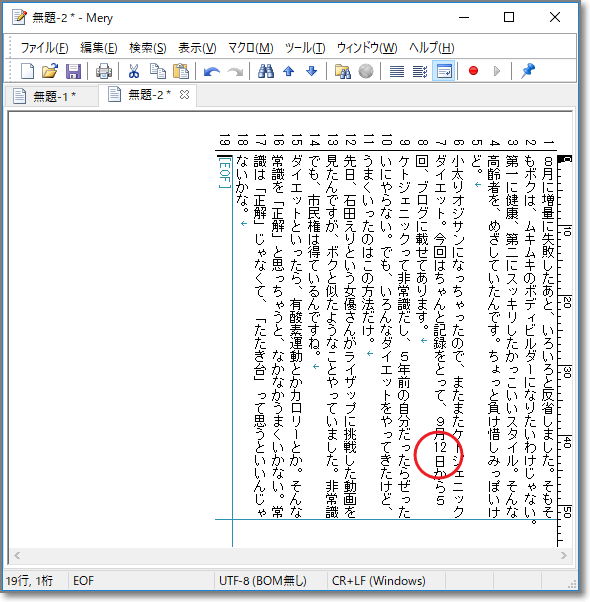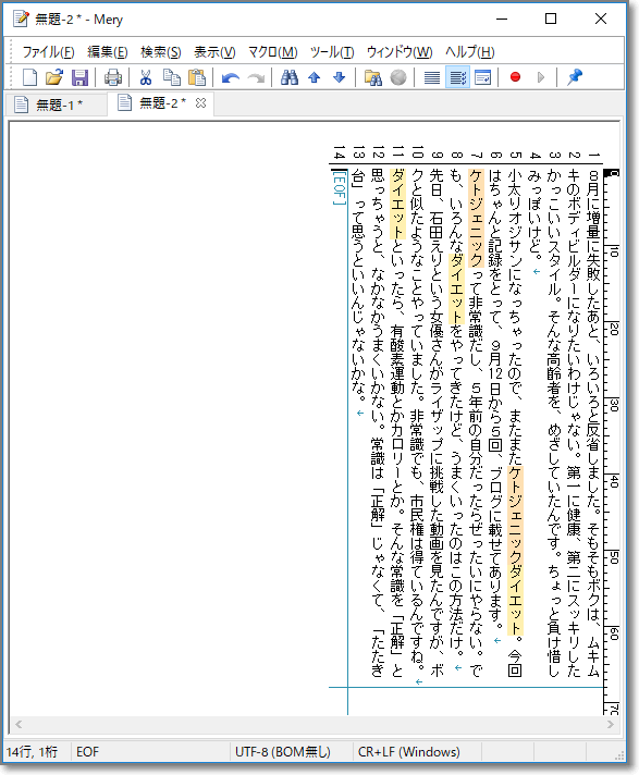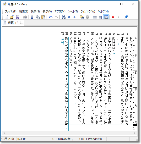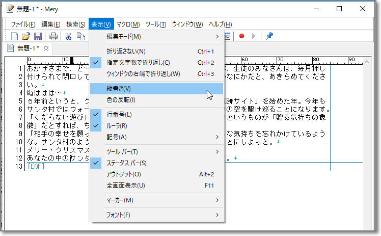 テキストエディタ「Mery」が、縦書き対応になりました。