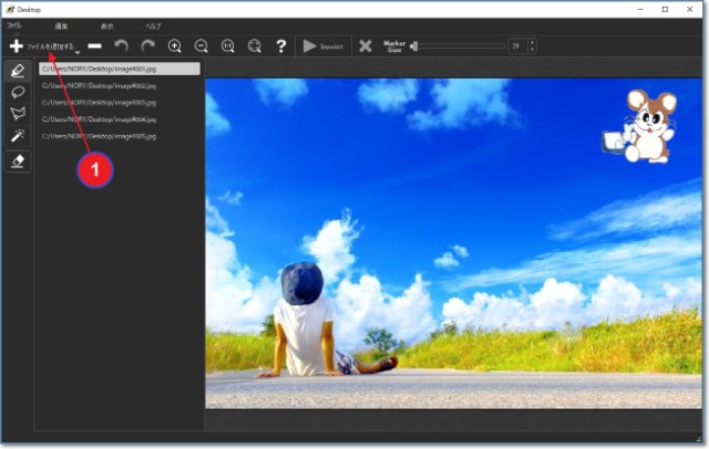 不要部分削除ソフト「Inpaint」の、複数ファイル対応版のようなもの。