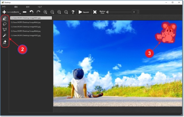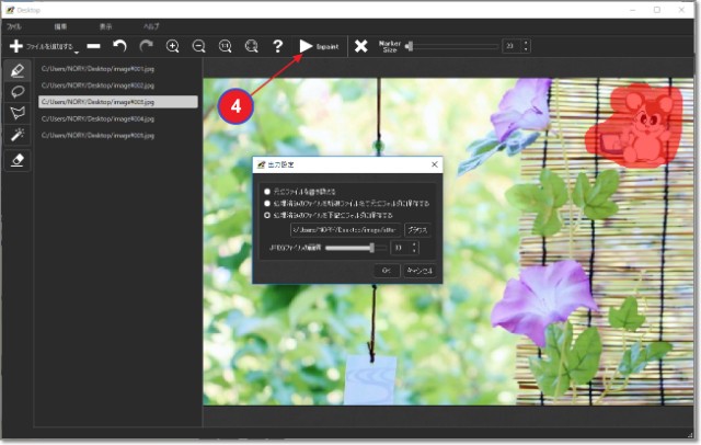 そして、4.「Inpaint」をクリックし、出力方法をしていして「OK」。