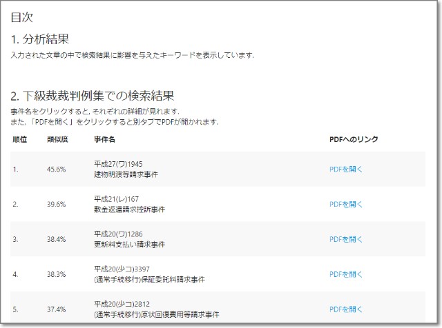 AIを利用して、提示された文章と類似している判例を見つけてきます。