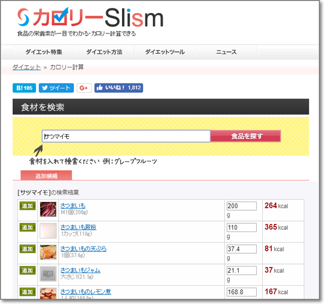 「カロリーSlism」なら、知りたいことはほぼ網羅されているので、