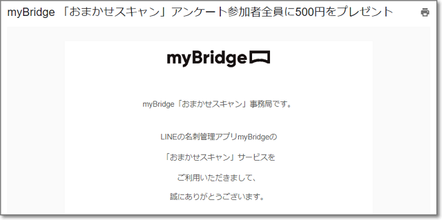 名刺管理アプリ「myBridge」の、無料スキャンサービスを使いました。