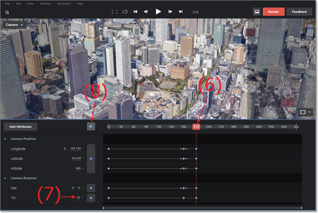 (7)Tilt(カメラの傾き)を70°程度にして、