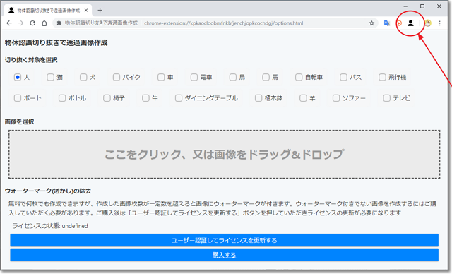 右上にできた拡張機能アイコンをクリックすると、ページが開きます。