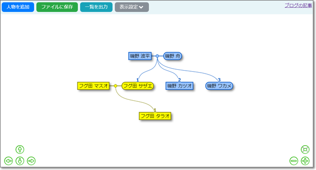 これをくり返すだけで、自動で家系図を作ってくれます。