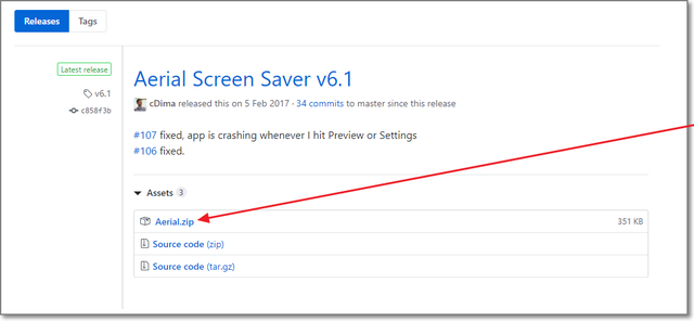 いちばん新しいバージョンの、「Aerial.zip」をクリック