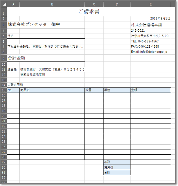 自動記入する請求書 その他 X Facebook LINE コピー 2019.08.01 エクセルで、一覧表の行番号を指定すると、 自動で請求書を作成するシートを作ってみます。 テキストは、明日。 test ad