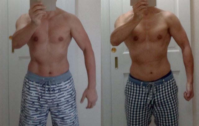 脇腹が目立たない角度だと、「だいぶスリムになったかな」って感じですが。