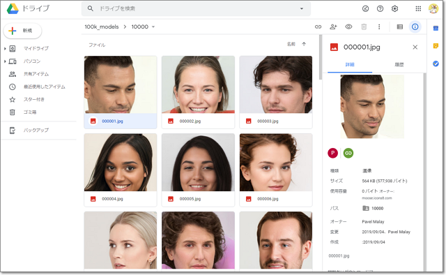 現在は、Googleドライブに、10万枚の画像が詰め込まれている状態。