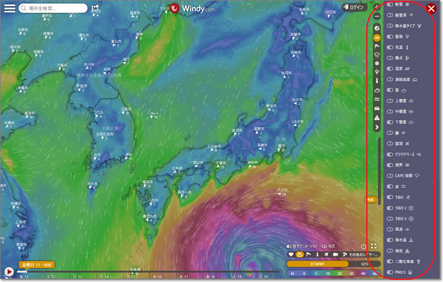 これまで紹介した、「earth wind map」や「Ventusky」に似たサービス。