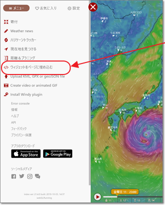 Webページの埋め込みは、ハンバーガーアイコンでメニューを表示