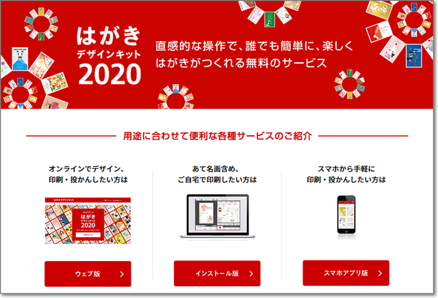 「はがきデザインキット」以外のコンテンツも、いろいろ。