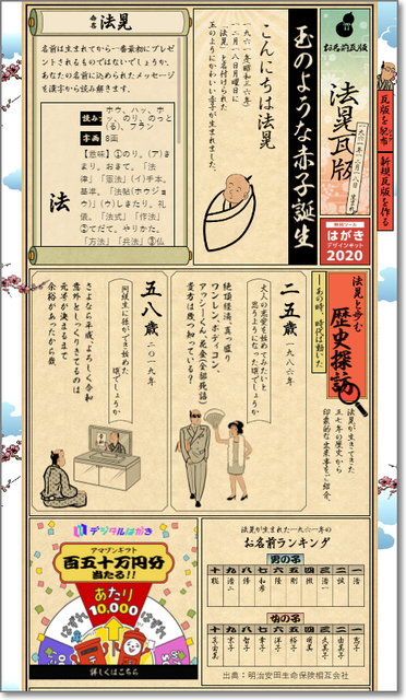 「お名前かわら版」が作れたり。