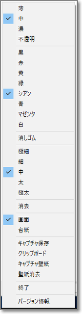 色や太さなどを変更したいときは、次のいずれかでメニューが表示されます。