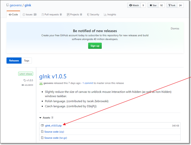 →解凍してできる「gInk.exe」を実行します。