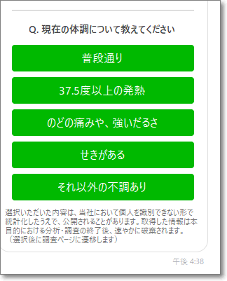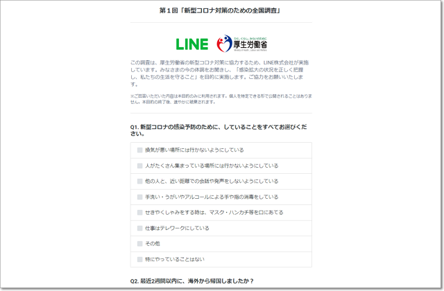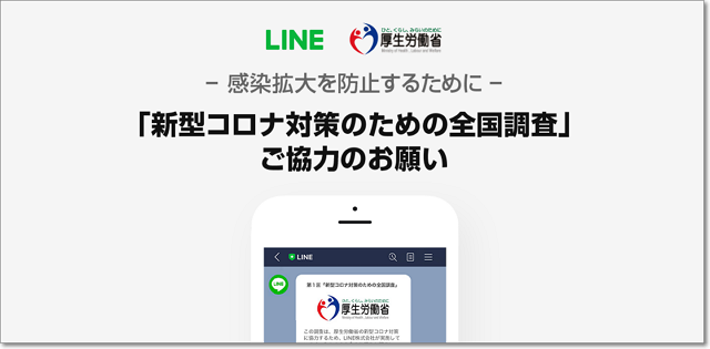 LINEと厚労省が、「第1回コロナ対策調査」をLINE上で実施しています。