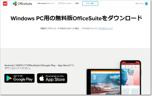 OfficeSuiteは有料ですが、無料でもごく一部の機能を除いて使用可能。