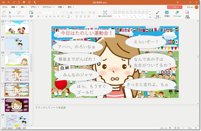 プレゼンテーションの再生は、手持ちのファイルでは問題ありませんでした。