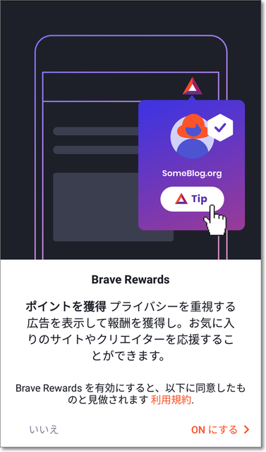 初期設定時に、「Brave Rewardsを有効にするか」と聞いてきます。