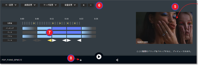6.キー・楽器・テンポ・各楽器の音量・曲の長さ を編集できます。