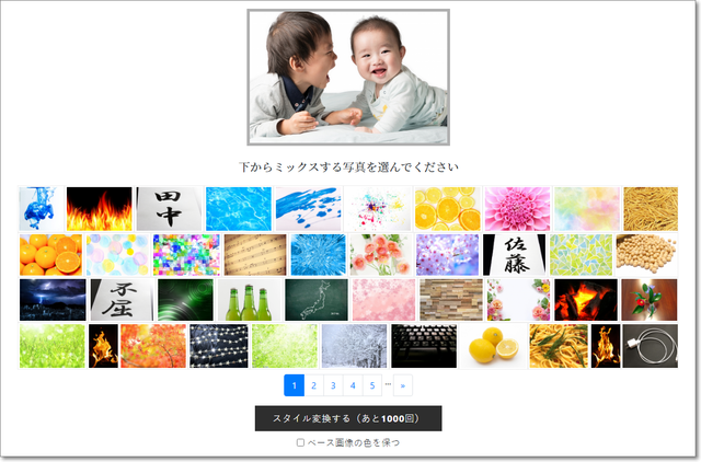 色や柄を取得する写真を選んで、「スタイル変換する」をクリック。
