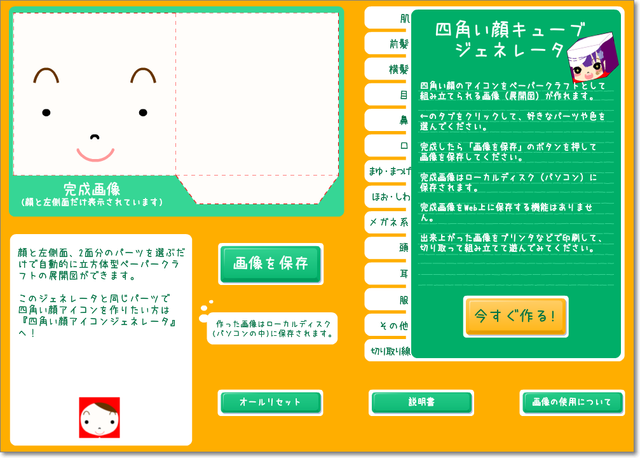 「顔の立方体」の展開図を作ってくれるWebサービス。