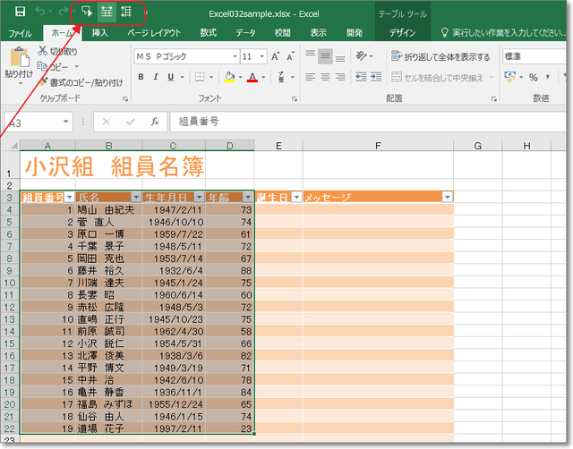 あとは、読み上げたい範囲を選択して、「セルの読み上げ」をクリックするだけ。