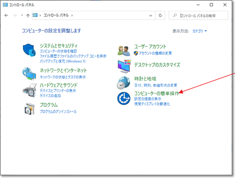 コントロールパネルで、「今ユーターの簡単操作」を選択。