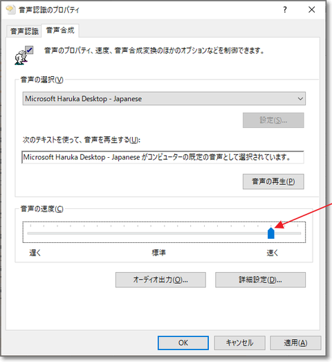 「設定」(Windowsの設定)にも読み上げ速度調整がありますが、