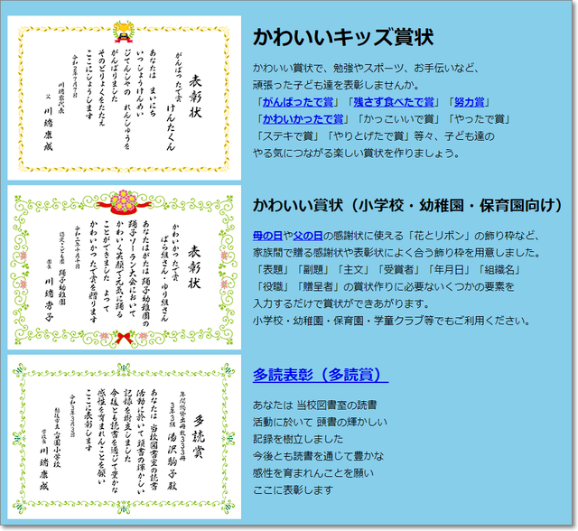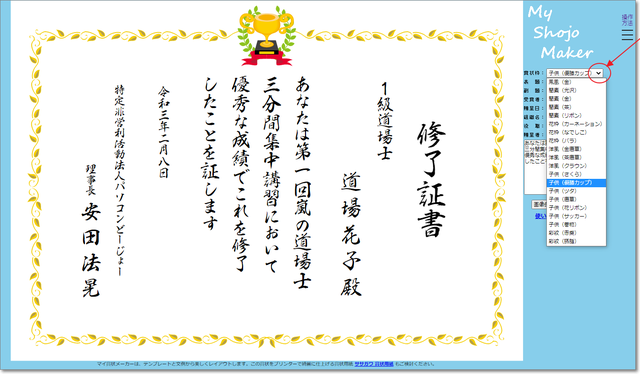 賞状枠は、ドロップダウンリストからいろいろと選べます。