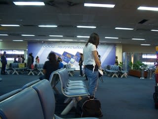 ドンムアン空港で、歩いてた人たちが、とつぜん立ち止まり始めたんです↓