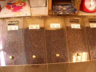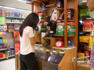 リンピン・スーパーマーケットでは、豆を選んでその場で挽いてもらえます。