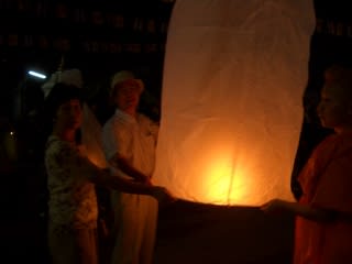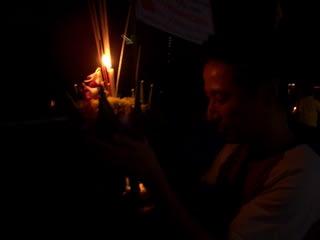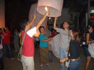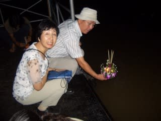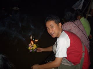 ↑デジカメだとうまく写りませんが、たくさんのコモロイが上がって、川にはろうそくを灯したクラトンが流れて、とても幻想的な風景。