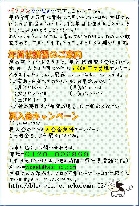 実際に、一部の教室で、退会・卒業された生徒さんに、お送りしてみます。