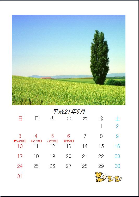 万年カレンダーを作ろう」では、祝日は自動的に赤くなったりしませんでした。