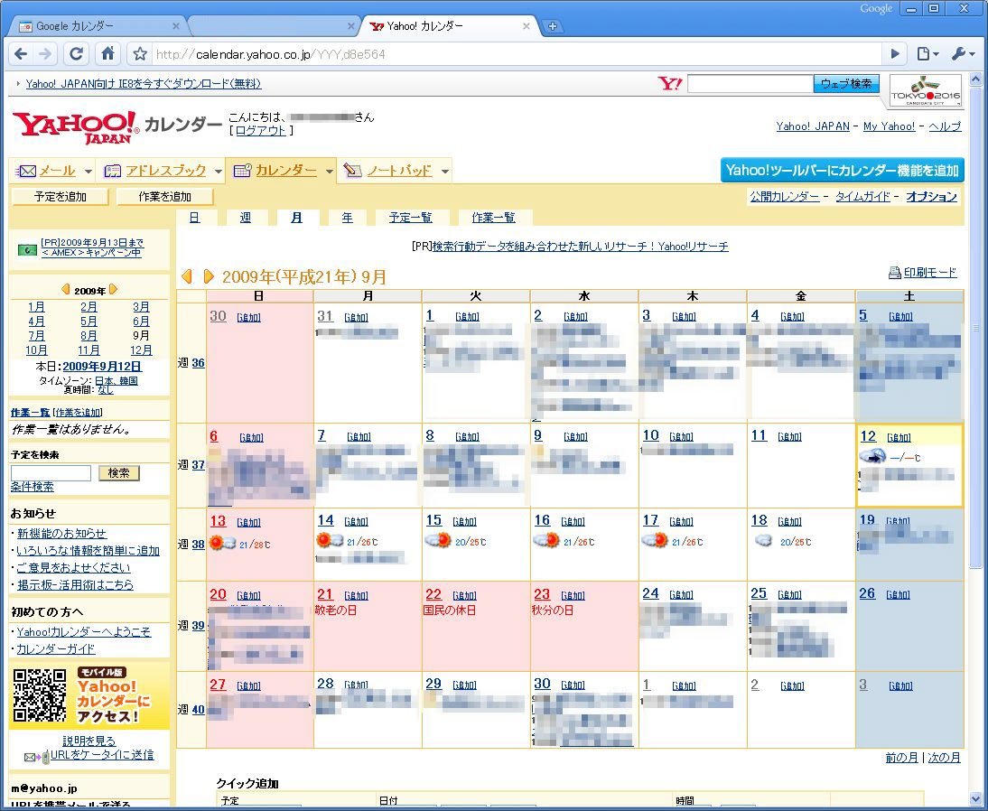 Yahoo!カレンダーは、Googleカレンダーと比べて、