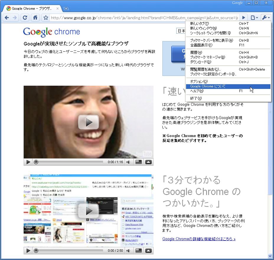 ↓設定メニューの「Google Chromeについて」→「いますぐアップデート」でできます。