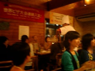 慣れてないのか、ピザを焼いている若い男の子(ハンサム!)が緊張しまくり。