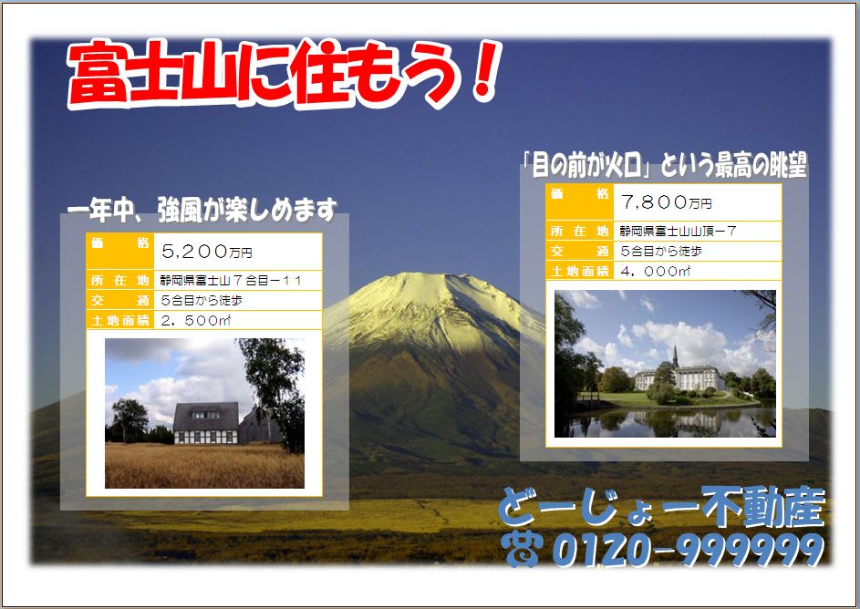 なぜか、妙な不動産広告になってしまいました (^^ゞ