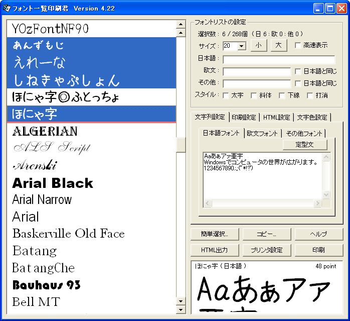 教材(各種紹介)名前の通り、フォントの一覧を印刷してくれるソフトです。