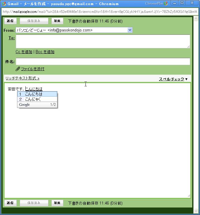 「Gmailで、入力中の文字がとつぜん消える」