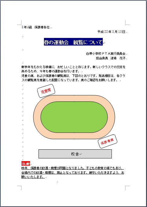 クラスごとに、「児童席」「保護者席」が異なるなど、