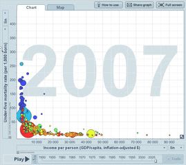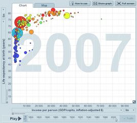 世界中の国のいろいろなデータを、2次元グラフで表示できます。