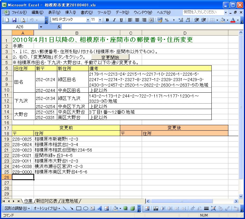 エクセルの「郵便番号変換ウィザード」は2007年公開なので、
