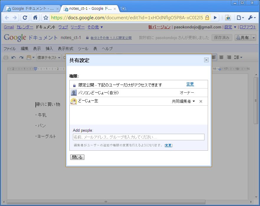 共有メンバーを「共同編集者」にすれば、メモの書き換えOK。