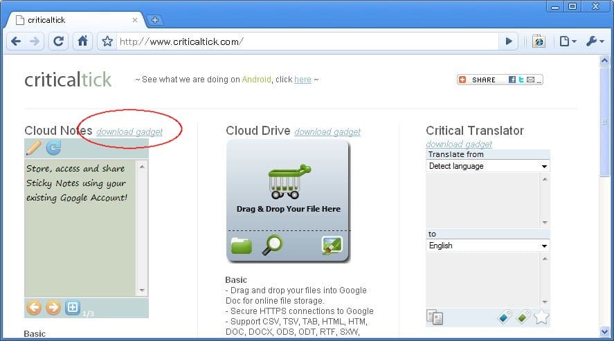 ↓の「download gadget」をクリックして、ファイルをダウンロード。