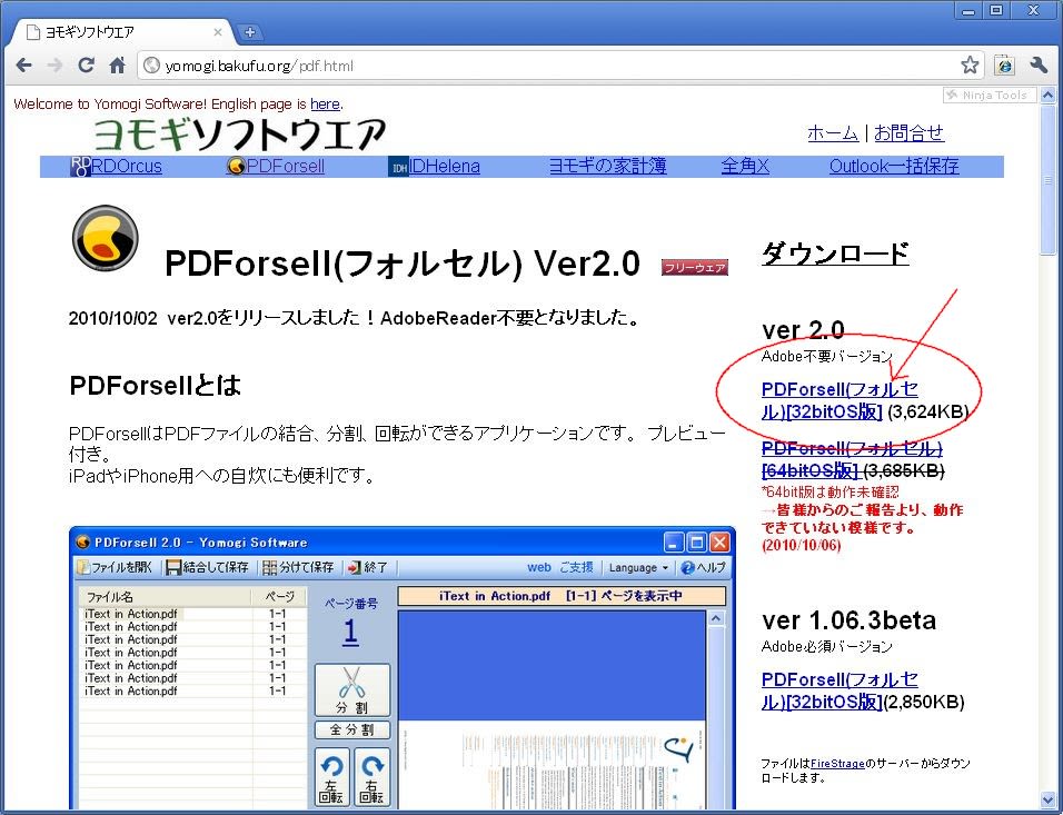 ヨモギソフトウェアの、PDForsellページを開きます。
