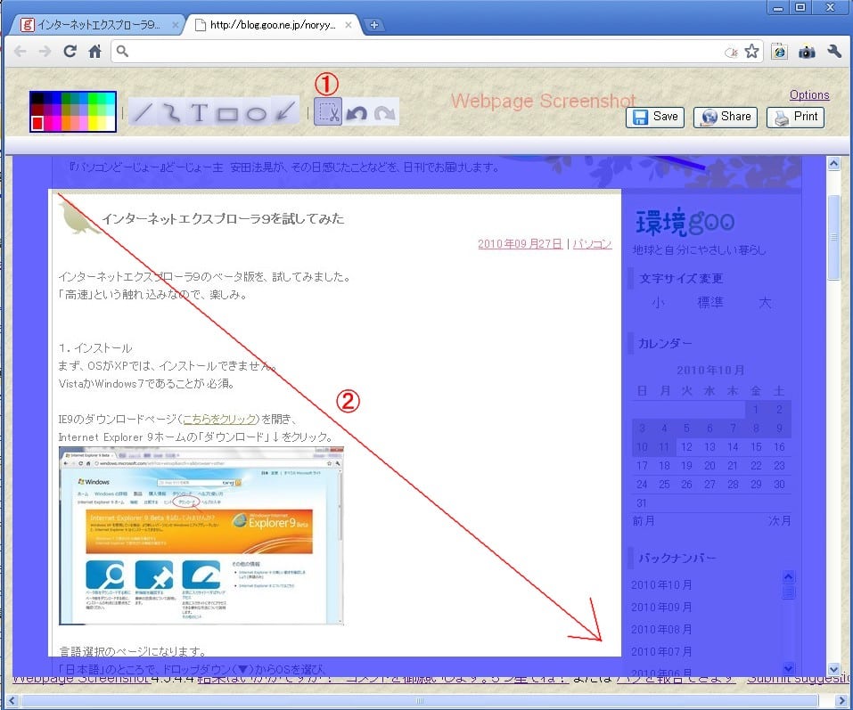 (Chromeで、こちらをクリックすれば、「webページショット」のページが開きます。)