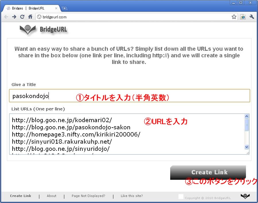 ②まとめたいホームページのURLを、入力(コピー&ペースト)していきます。